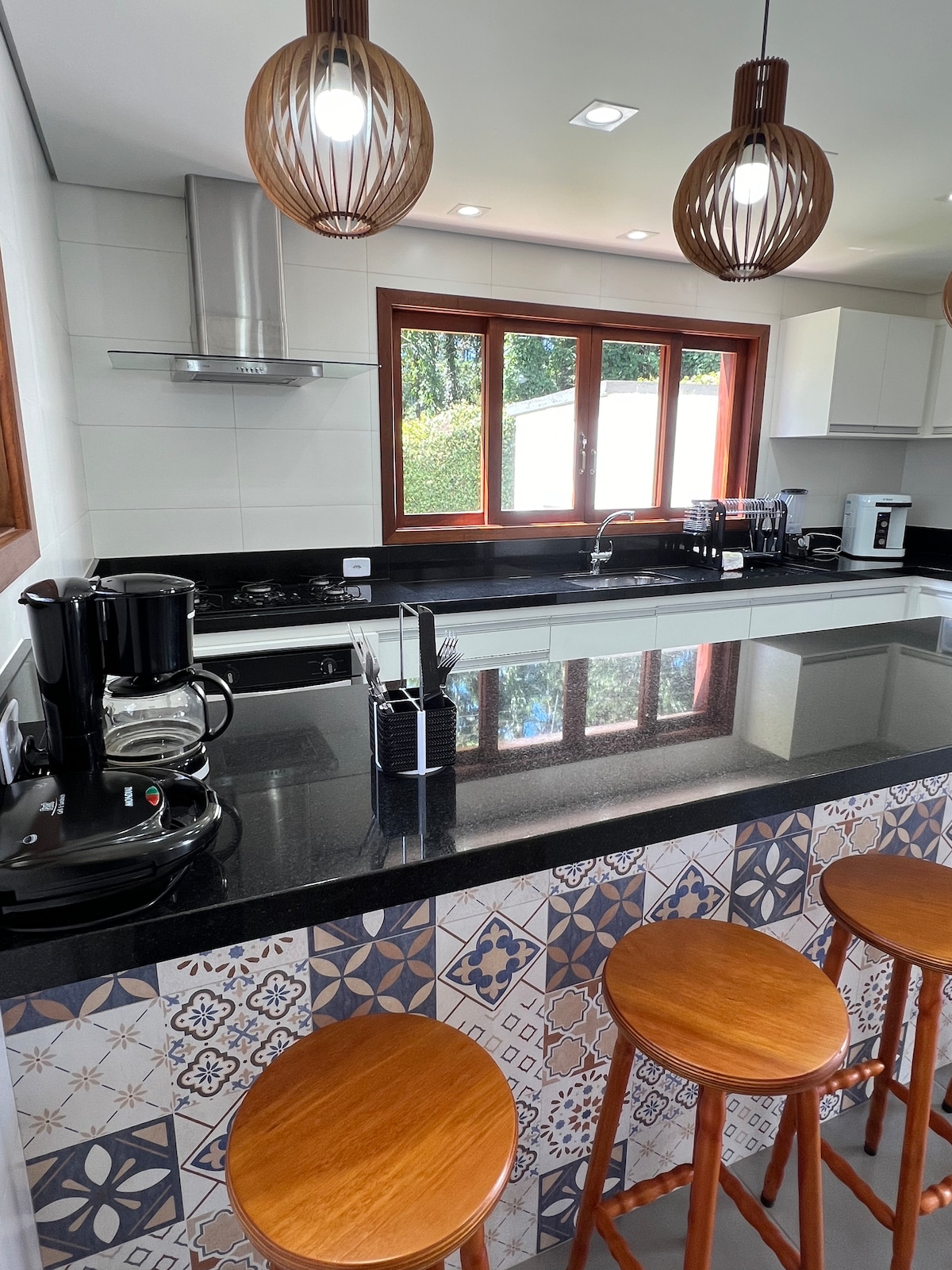 Super cozy house, ideal to rest and enjoy nature with family and friends. Closed condominium with 24-hour security. 5 en-suites + office, spectacular view, 110m2 deck overlooking the Araucaria Valley; covered gourmet area, barbecue, pizza oven. Beautiful garden with araucarias, pine trees and fruit trees. Only 4 km from downtown Capivari; structure for home office with fiber optic WIFI, SKY cable TV; garage for 6 cars. We recommend housekeeper/cook/pizza chef/barbecue service