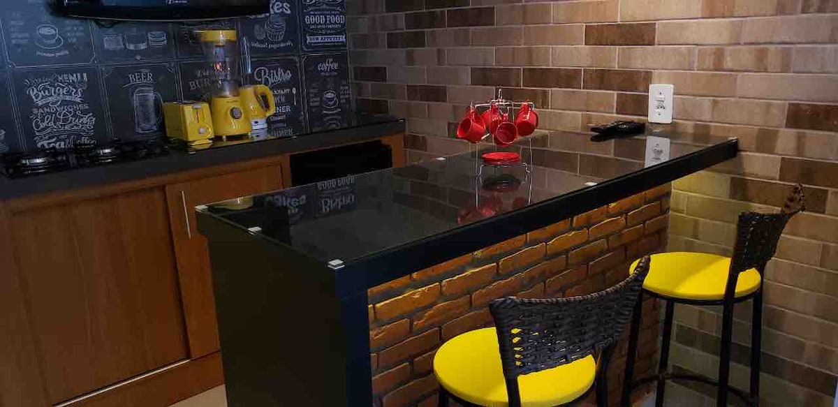 Modern 1-bedroom apartment and recently renovated on Avenida da Praia, near channel 4, with a side view of the sea and next to bakeries, markets, restaurants, bars and everything you need a few meters away. We are just a 10-minute walk from Shopping Praiamar and Praiamar Corporate, and in an excellent central location for those who need to get around Santos.