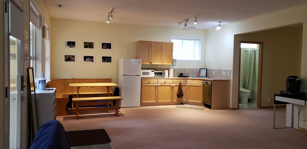 Experience the perfect getaway at our new studio in Canmore, Alberta. Situated just moments away from the Canmore city center (within walking distance), this rental offers easy access to a plethora of exciting tourist sites, picturesque trails and lakes in Banff, Kananaskis and Canmore. This cozy and fully equipped unit is mostly ideal for 1 ~ 2 guests and offers plenty of amenities. One free guest parking spot is available. Free access to pool and hot tub. The host pays the airbnb service fee.