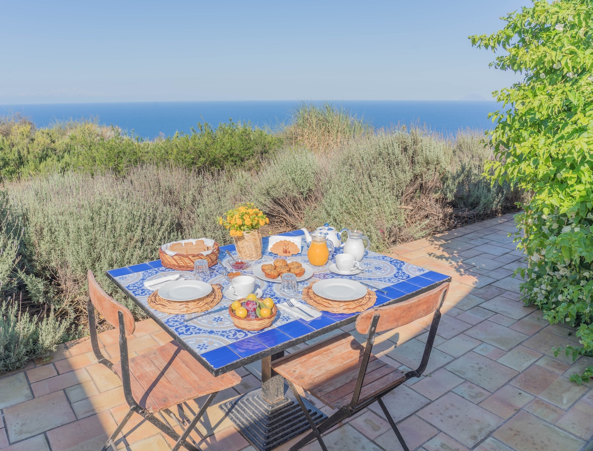 The apartment is part of the house where the sole owner lives, consisting of a large bedroom with a double bed that can be separated, air conditioning, an anti-bathroom, a full bathroom with a shower, a kitchen equipped with everything you need, sofa and television. In addition, a large terrace overlooking the sea with a covered part for lunch and relaxation and a wonderful view of Panarea and Stromboli. A private staircase leads to the beautiful bay below with a wonderful sea.