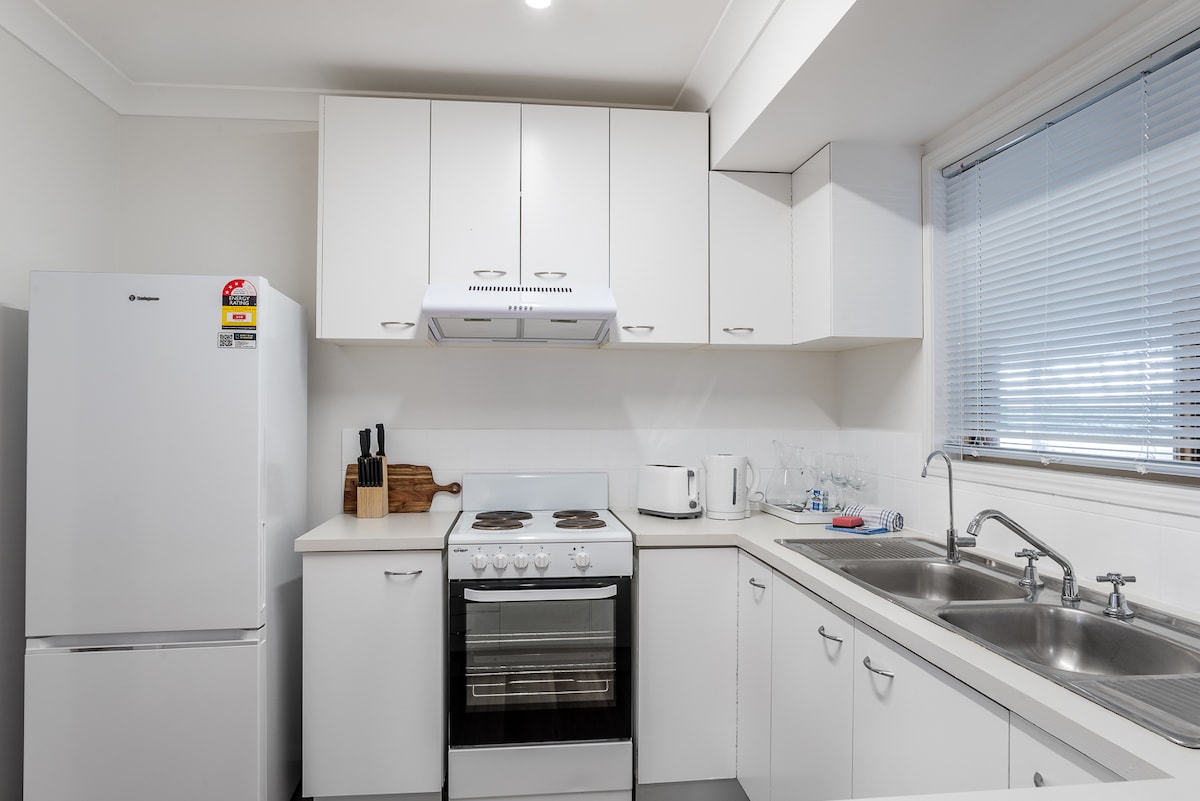 We warmly welcome you to our spacious, fully self-contained, light-filled, air-conditioned apartment. It features two large bedrooms - one with a king bed, and the other with two king singles (which can be configured as a king upon request at the time of booking). Enjoy complimentary Wi-Fi and a large TV in the living area. Situated in a beautiful, quiet, leafy suburb just a few kilometres from Brisbane City, the apartment offers easy access to public transport, local shops, restaurants, & cafés