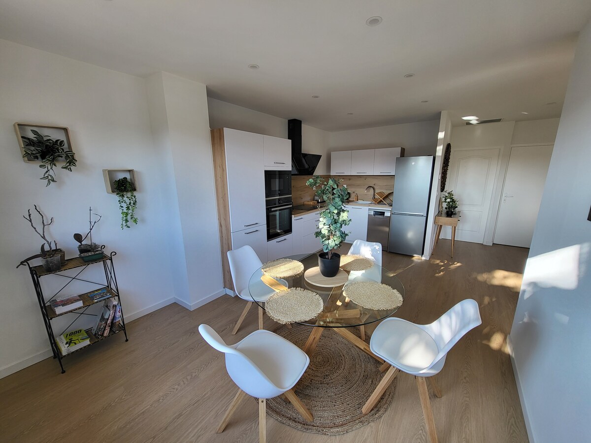 Keep it simple at this peaceful and centrally-located place, 20 minutes from the beach, 25 minutes from Spain and 5 minutes from Perpignan. Pleasant 47 m2 apartment with a separate entrance. A main room with equipped kitchen, combined refrigerator, oven, microwave, induction stove, coffee maker, kettle... The living room has a large sofa bed that is very comfortable. You will have a nice room with storage, a laundry room and a bathroom.