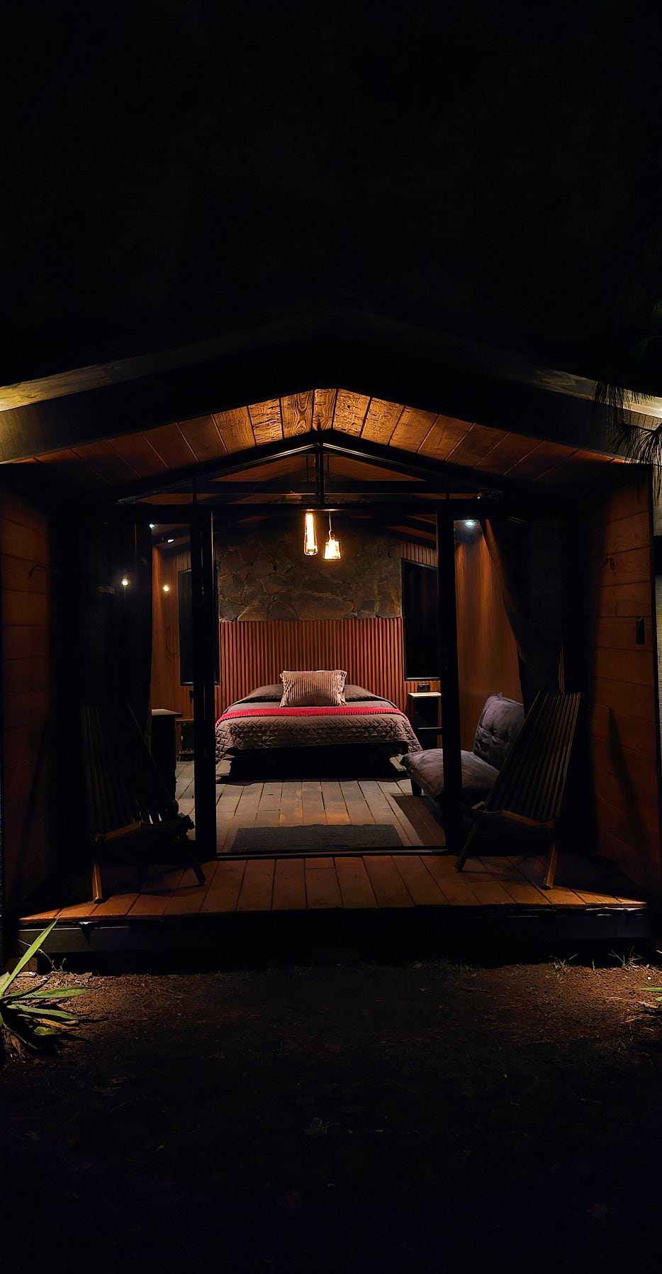 1 Queen bed - 1 Sofa bed - 1 Full bathroom - 1 Equipped kitchen - 1 Hanging net This cabin is part of a duplex, located on the top floor, but has a completely separate entrance. It's designed to give you total privacy, so you won't notice the presence of those staying downstairs.