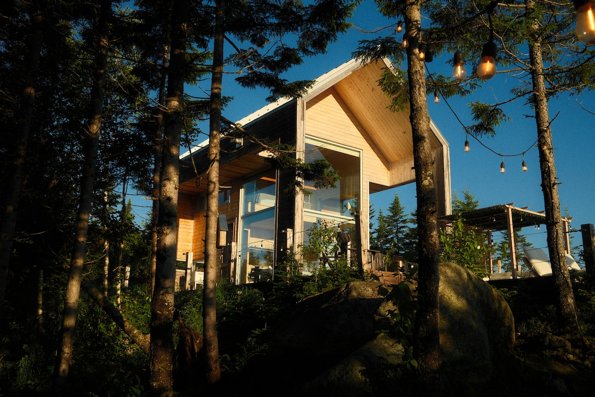 Small Scandinavian chalet for two people ideally located to enjoy the attractions of Charlevoix. It has a thermal circuit (hot tub, sauna, hammam) Very intimate and in the middle of the woods, the view overlooks the majestic river and the mountains in the distance. All the modern equipment is there and the comfort is absolute A/C and outdoor fireplace. The open concept design was designed for an immersive experience in nature: large windows, panoramic shower. Access via a private road at 500 m.