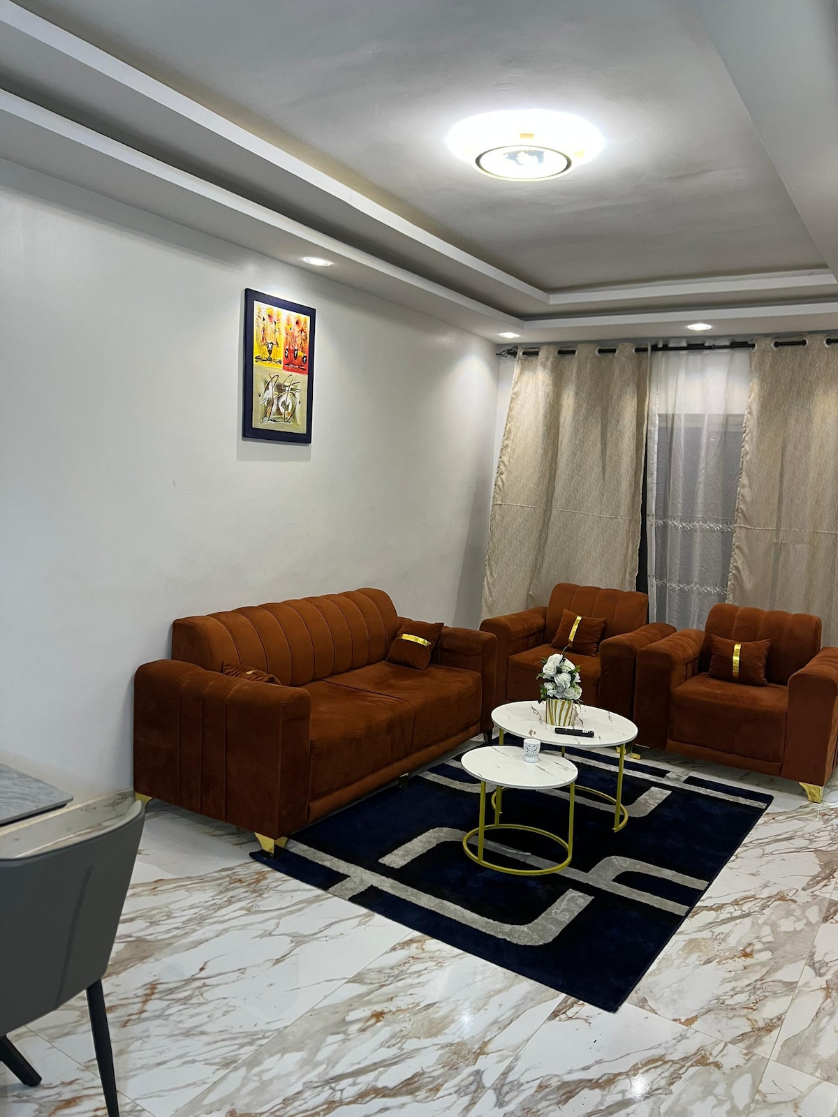 My apartment is a peaceful, clean and comfortable place. The space is well organized with modern decor that creates a calm and relaxing atmosphere. It is a great place to rest after a day in Dakar.