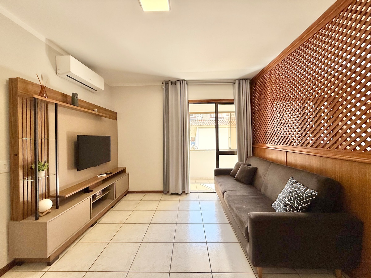 Wonderful apartment on the seafront, close to the city's main points, ideal for your vacation. Located on the 4th floor with a side view of the sea, split air and smart TV. Furnished property designed for your comfort and practicality during your stay. It has an integrated dining and living room, barbecue, washer and dryer, stove, refrigerator, microwave, sandwich maker, blender, hairdryer, iron, complete utensils.