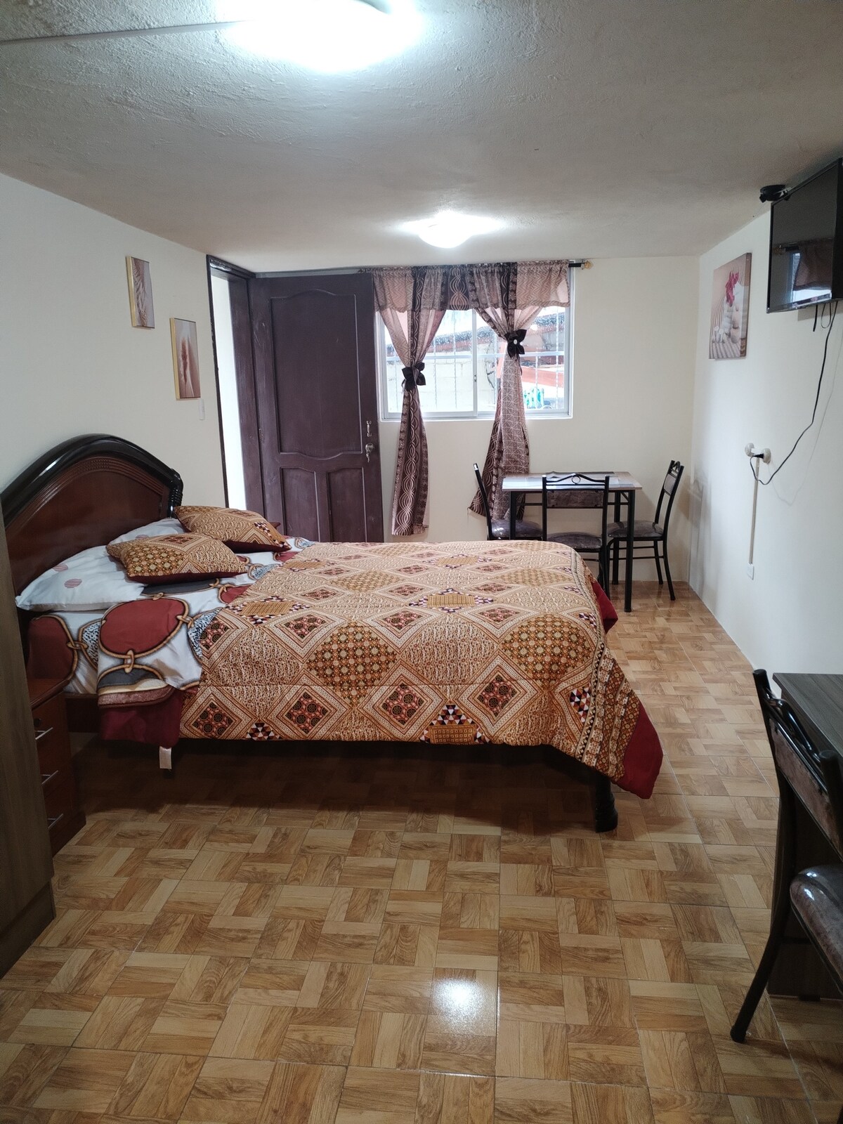 Cozy apartment remodeled in the colonial quarter of Quito, located on the third floor, a loft with a spectacular panoramic view of the Historic Center. It has two bedrooms, two bathrooms, a living room, a dining room, and a kitchen equipped with filtered water and essential implements to meet our guests' needs. The comfortable facilities provide good relaxation. We have Wifi 620Mbps a 1.05Gbps, a telephone line, a television with Netflix, and heaters for the shower and kitchen sinks.