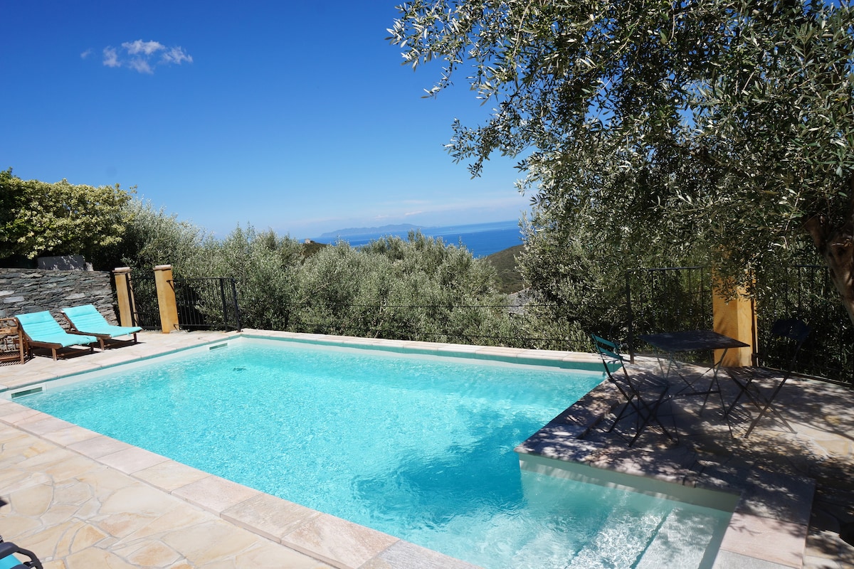 Albitru is one of the two villas in the Moline Gardens. Located in the heart of Cap Corse, 3 km from the sea in a 4000 m2 property, the villa is functional, tastefully furnished: inside, pleasant rooms to live, outside, a large terrace, where you can eat and rest. You will not remain insensitive to the beauty of the garden that surrounds you... In the property, possibility to enjoy the pool during opening hours