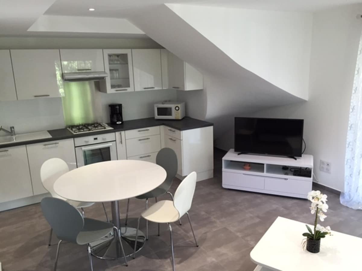 7 km from Ajaccio and 8 km from the nice beach of the Gulf of Lava, relaxation assured in this spacious loft of 80m2, cosy and so bright, with sea view in the distance, classified 4*. Located in Alata in the countryside, 20 minutes from the airport and 15 minutes from the port, the single-foot loft (villa bottom), is fully equipped for a pleasant stay. 2 terraces... Complete childcare equipment. It is a loft so there is no closed room except the bathroom! Ideal for a couple and max 2 children.