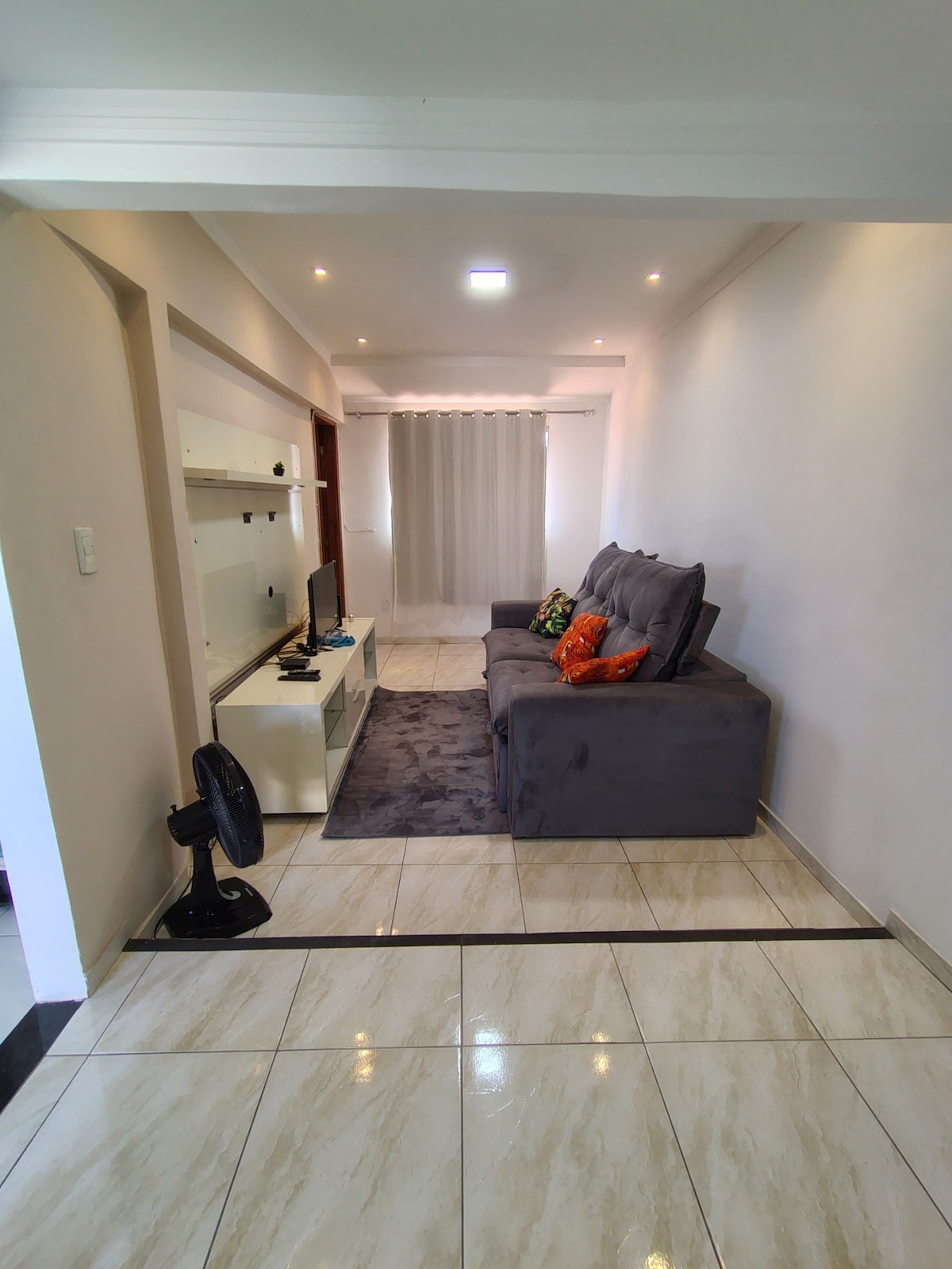Ar condicionado Split nos 2 quartos; TV em todos os cômodos (na sala de 55" com HBO Max e Prime Video e TV nos 2 quartos de 50" e 40") 3 quadras do Mar/Orla de Itaparica (7 minutos a pé) Garagem Frente do condominio tem farmácia, padaria, restaurante, pizzaria 3 supermercados grandes a 700m 3 ventiladores de teto (2 quartos e 1 sala); 1 colchão casal queen; 1 colchão casal normal; secador de cabelo; cafeteira eletrica; liquidificador; Airfryer, rack para trabalho; cadeira escritório