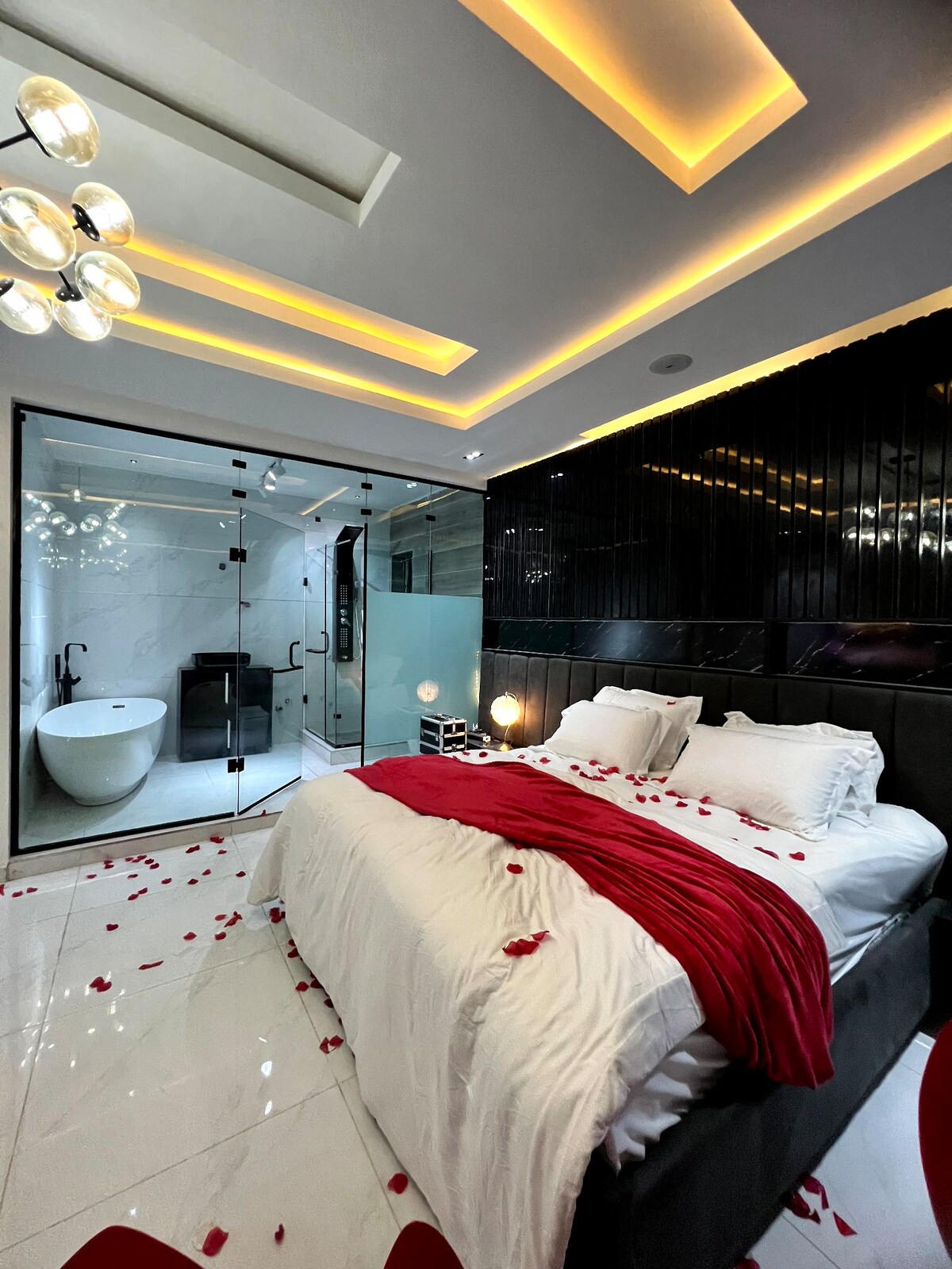 This luxuriously one bedroom apartment is a convenient choice for couples, individuals or even smaller families looking for a fully equipped apartment in a center of lekki. It includes a queen bed, living room, 1 bath, and a fully equipped open kitchen. Enjoy amenities like 24/7 electricity and fast-speed internet service. There is plenty to do within walking distance, including bars and restaurants. The house porter is available 24/7, our 24/7 management office is ready to assist at anytime.