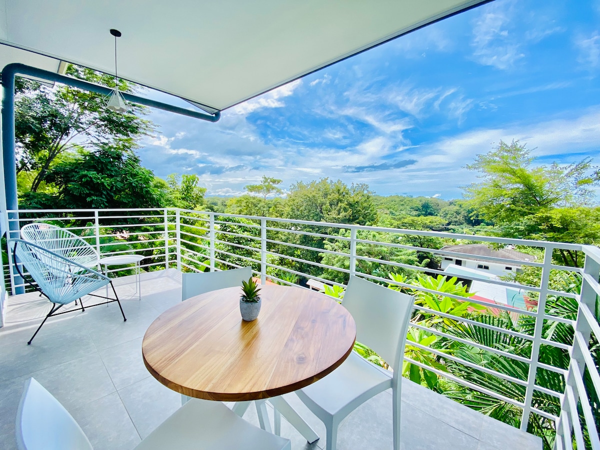 Please note: the discounted rate is due to next door constructions! Just minutes walk from the majestic beaches of Malpais, our modern home is located within a lush retreat community with 24h security & gorgeous shared pool 700m to Santa Teresa's cross, restaurants, banks & shops. Our quiet getaway is perfectly balanced for tranquil vacation in a lively town Our stylish studio offers comfortable & versatile sleeping, exquisite kitchen, cozy living room & outdoor deck with superb BBQ grill