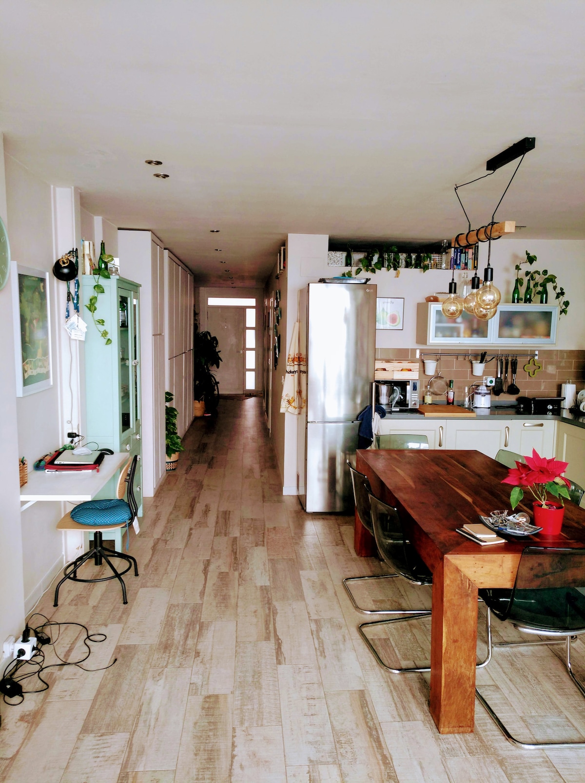 Detached house with garden, in a quiet and small town 15 minutes by metro from Valencia and 15 minutes by bicycle from the sea. Recently renovated, it retains the essence of the area's rural homes. It has a 110 m2 garden with orange trees, bougainvilleas and olive trees, available to guests, where they can enjoy peace and quiet in a fabulous environment. It has a barbecue, dining room and outdoor living room.