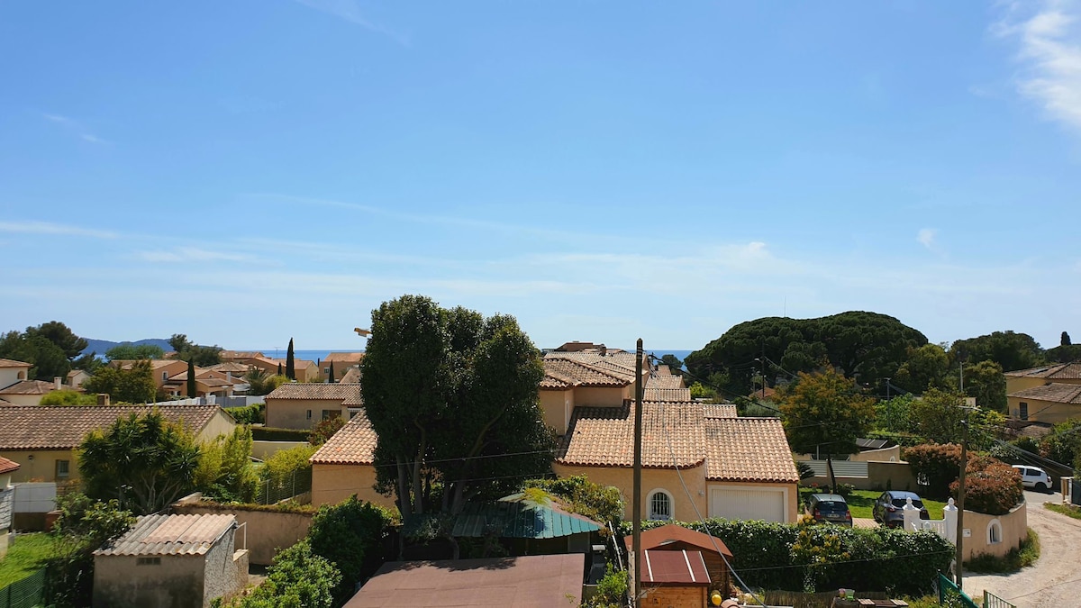 Bright and spacious apartment of 90m² on the 1st floor of a family house, with open sea view and private southern terrace. Located in a quiet environment, just 2.4 km from the beaches and in the immediate vicinity of the trails, it is ideal for savoring a breakfast in the sun or an outdoor evening. Completely independent entrance, secure private parking and full reversible air conditioning for optimal comfort.