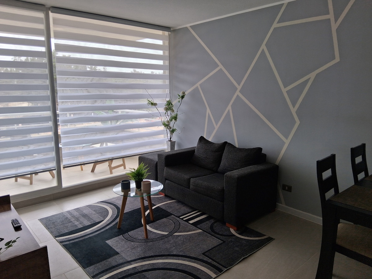 Comfortable apartment with exit to the coastal sector, very comfortable and with direct views of the sea, sunset. Everything you're looking for to rest in the V region. An exquisite terrace with panoramic closure and a large grill that allows you to enjoy it all year round. Well-equipped apartment, it has a 50” smart TV with Netflix, Disney+, Prime video, HBO Max, YouTube, among others. It has many board games such as the fabulous great Santiago and many more, it also has a beach set.