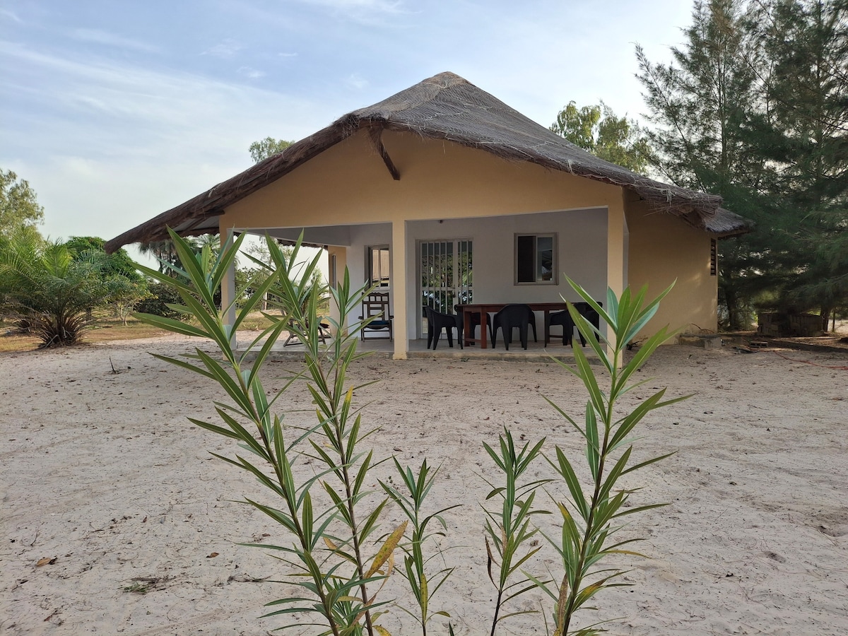 Un chouette coin de Casamance qui s’étend de la plage sur l’Atlantique jusqu’au petit bolong (bras de mer) de Diannah. Deux paillotes vous accueillent au calme du littoral casamançais, l’une composée de deux grandes chambres chacune dotée d’une salle de bain, et l’autre comprenant une cuisine, une cuisine de plein air et une grande terrasse séjour salle à manger. Tout ça dans un grand jardin bordé aussi par la forêt.