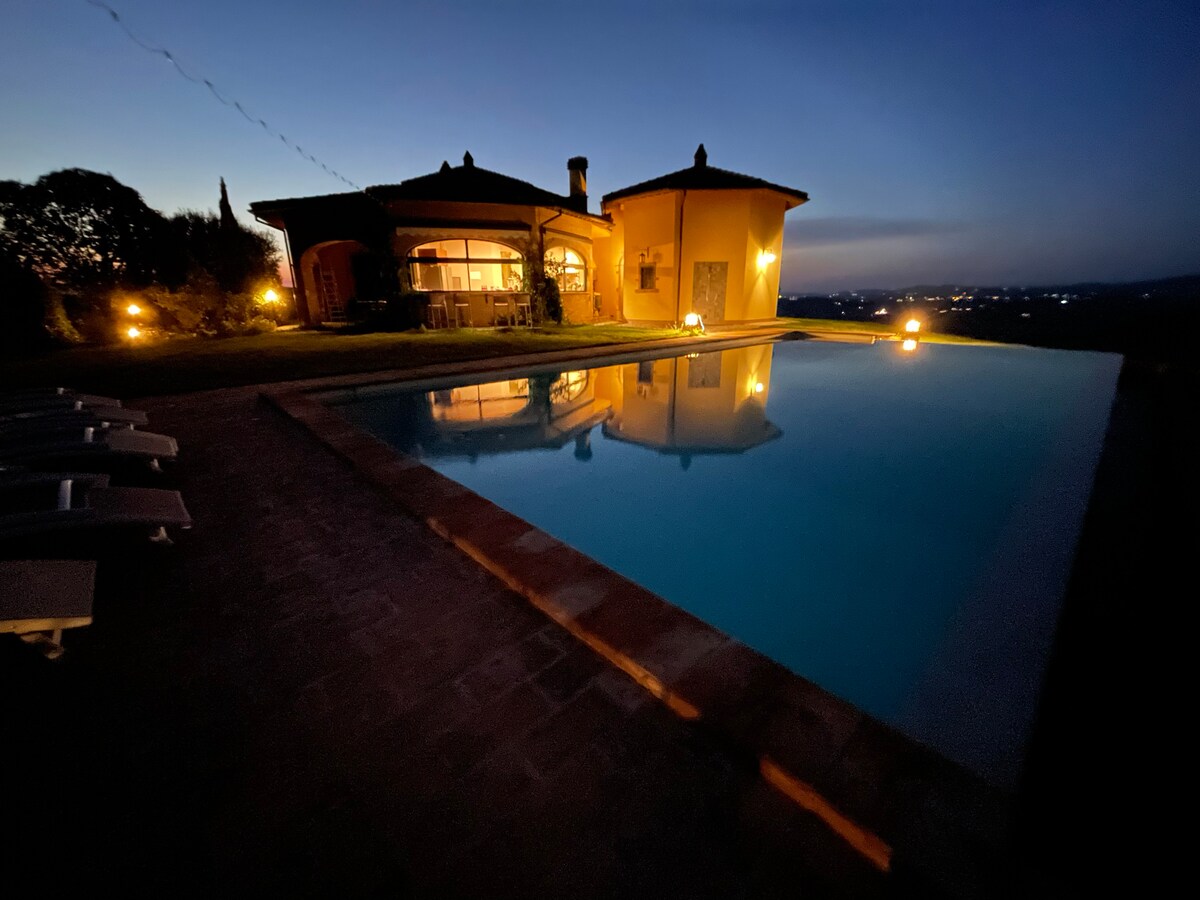 Enchanting, exclusive 10acres estate on a hill, memorable sunsets; large pool framed by lavender&rosemary, open year-round. New air conditioning, Starlink internet. Very private&peaceful 2 floors, 4bedrooms, 4baths, jacuzzibathtub, 55inch smartTV, well-equipped kitchen, porch & pergola for alfresco dining, Weber barbecue, pizza oven, olive grove, fireplace; 20 min. to Orvieto,Todi,Amelia; 10 minutes drive to train station to Rome/Florence, 5min drive to shops in town. Grounds/pool caretaker