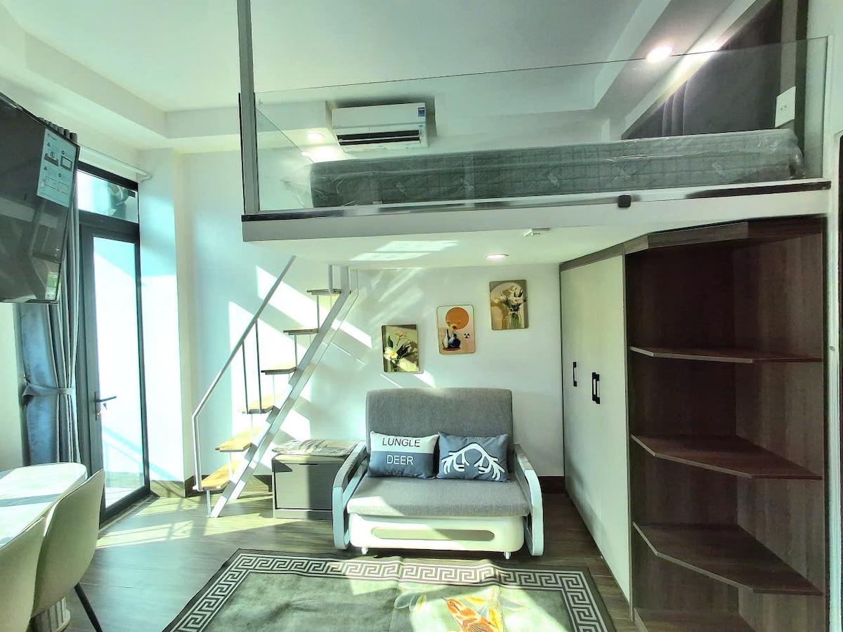 Nestled in an old communal building in Lang Ha, stepping up 7 staircases reveals a cozy home. The house is fully equipped with a spacious living area, bright living room, kitchen, balcony and free laundry. It's a perfect place for short trips or business stays. "Staircase Hideout" unfolds the dialogue between the old and the new, a microcosm on the Vietnamese way of living. Welcome to experience Hanoi from a different perspective, a modernized street that still lives the essence of folk culture!