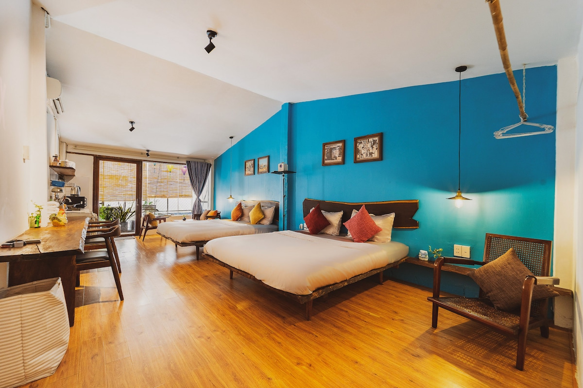 A unique 60sqm studio hidden in an alley in the heart of Saigon, offering both privacy and convenience. Located on the 2nd floor of a townhouse, right above cozy BeanThere Café on the ground floor, it’s perfect for guests who love stylish living and great coffee just steps away. Only minutes from famous attractions, shopping malls & nightlife. Each guest is provided with one meal (1 food & drink) at café downstairs/each night booked. Free housekeeping for stays over 4 nights with 1-day notice.