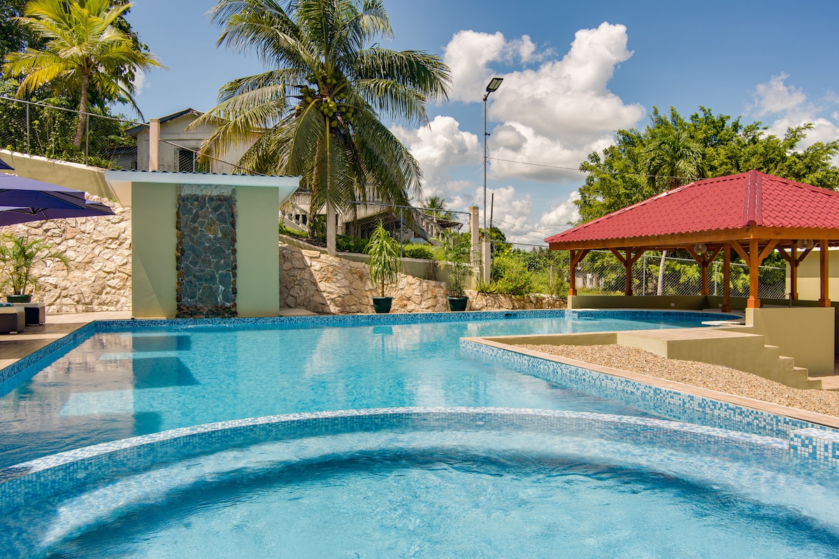 Experience comfort and tropical luxury at Benjamin’s Hillview Manor in San Ignacio. Relax in our brand-new saltwater pool with a waterfall, sun loungers, and a shaded pavilion. Enjoy modern amenities including air conditioning, free WiFi, Smart TV, refrigerator, and microwave—all just minutes from Cahal Pech, restaurants, and shops.