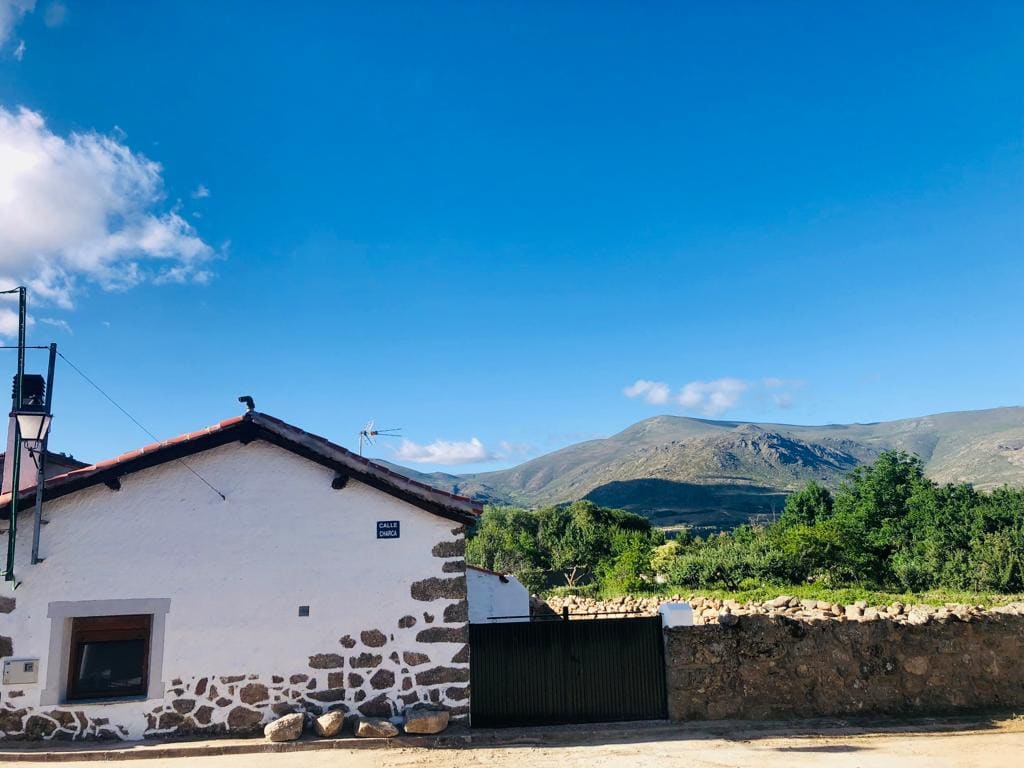 Casita -Madera Vieja-Nature&Relax- located in AMAVIDA (Ávila) has 2 large outdoor areas, a 40m2 patio that gives entrance to the house and a 100m2 back garden with swimming pool and barbecue area. All for private and exclusive use of guests. Centennial house built in 1900 that retains all the charm of the past. Enjoy hiking trails, the tranquility of the village and the sound of nature. Connect with the calm and tranquility of the place.