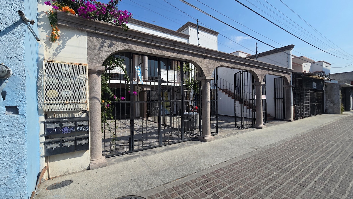 🌟 Private and cozy loft 🔒 Total privacy: separate entrance, not shared with anyone. 🚗 Garage for one car and tastefully decorated space, with a cozy and bright foyer. 🍳 Kitchenette with compact refrigerator, microwave and everything you need, TV in the room. 📍 15 min from downtown, with quick access to the main exits to Querétaro, San Miguel de Allende, León, Guanajuato and CDMX. 🛒 Close to shops, supermarkets, gyms and transportation.