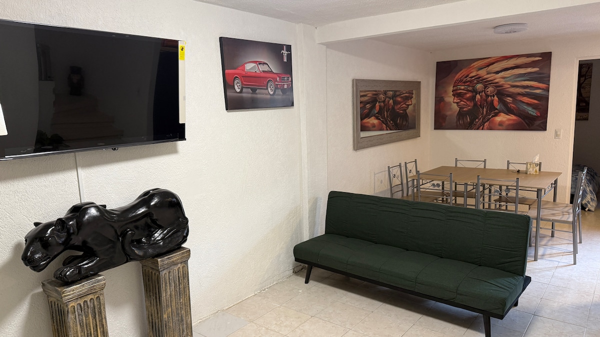 Welcome to our cozy family retreat! Located in a safe area, our Airbnb is ideal for a relaxing family stay. We offer: -Comfortable Spaces: 2 bedrooms, 1 full bathroom, equipped kitchen and cozy living room. -Convenient Location: Close to shops, restaurants, parks, and public transportation. -Amenities: Wi-Fi, streaming service (Disney, Amazon Prime, Claro Video, Roku), security camera, and more. We look forward to welcoming you soon!