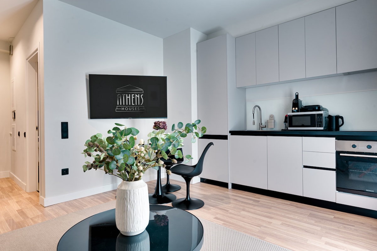 Welcome to this stylish and modern second floor apartment, located in the heart of Kypseli just steps from shops, cafés, and restaurants. It features one cozy bedroom, a fully equipped kitchen for delicious meals, a comfortable living area, and a smart TV. Ideal for couples, solo travelers, or business guests. The apartment is part of a boutique building with shared amenities including a gym, jacuzzi, sauna, and meeting room offering both comfort and a touch of luxury for your stay in Athens.