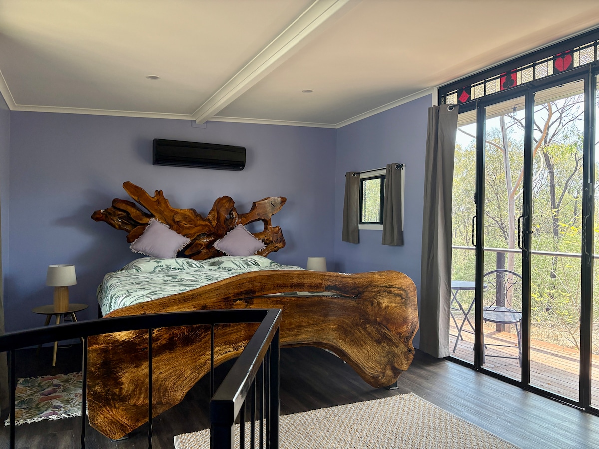 Escape to this unique two-storey cubby house, blending modern comfort with rustic charm. Relax in a handcrafted timber bed, cook in the fully equipped kitchen, and unwind on the balcony surrounded by trees. With a spiral staircase, stylish bathroom, and peaceful bushland views, it’s a cozy hideaway for couples or solo travellers seeking nature and comfort.