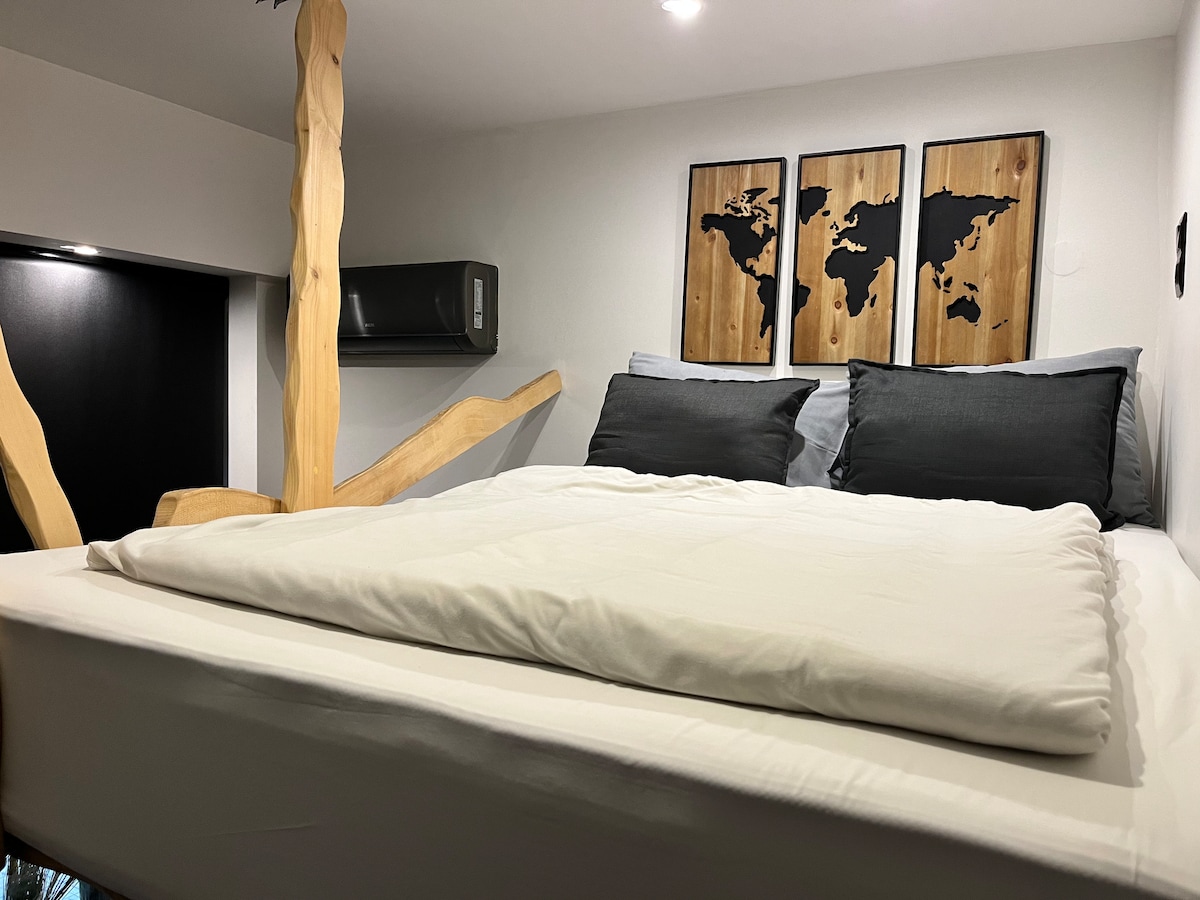 Stylish loft near Thessaloniki’s historic Vardaris district, featuring breathtaking port and city views. Hotel-style bedroom, modern bathroom, spacious living area, and cozy kitchen alcove. Featuring great public transport options, located steps from downtown & Ladadika nightlife, close to cultural sites, and a short drive to One Salonica Outlet Mall. Self check-in with full support. Designed for comfort, style, and an unforgettable city stay for couples, solo travelers, or business guests!