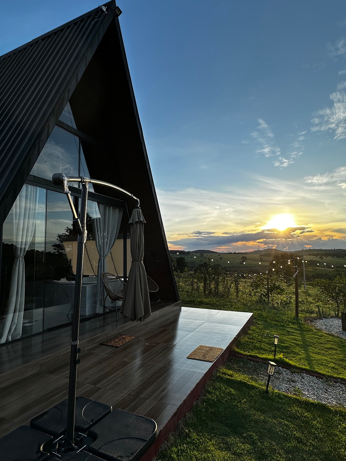 Our chalet is fully integrated with nature. It has large glass frames and a free view of the Cerrado and mountains, providing a spectacular view. Full kitchen, top-notch bed and bath linens, great heated shower, closet and bed with 5-star hotel mattress. There is a balcony with a deck along the entire length of the cottage, with a table and chairs outside so that guests can contemplate the nature and starry sky of Chapada - while having a wine in the Jacuzzi!