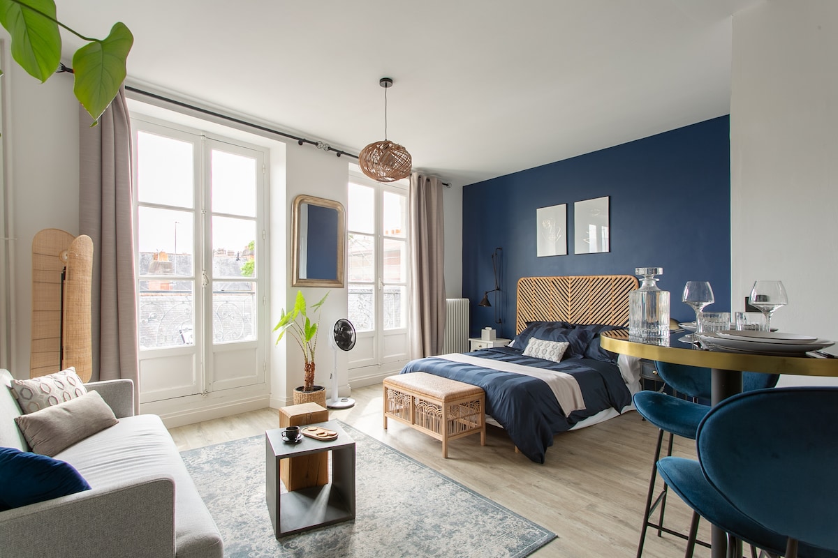 Located in the center in a quiet residence, the 35 m2 accommodation is located on the 1st floor overlooking the courtyard. Ideal base for visiting Nantes and enjoying the heart of the historic and friendly city. The decor is neat, modern and refined. Queen size bed in the bedroom and comfortable sofa bed in the living room. Perfectly equipped and designed to make the most of your stay.