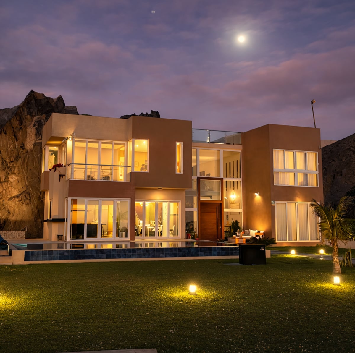 🌊 Hermosa casa en primera fila frente al mar, con acceso directo a la playa y una vista espectacular. Ideal para vacacionar en pareja, familia o con amigos. Cuenta con 5 habitaciones, 4 baños completos, piscina privada, zona de parrilla, horno de barro e internet Starlink. Excelente ubicación: a 5 minutos del muelle de Cerro Azul y restaurantes (caminando por la arena a 20 minutos), a 15 minutos de Asia y a 1 hora de Lunahuaná. Espacios amplios y perfectos para el descanso y la convivencia.