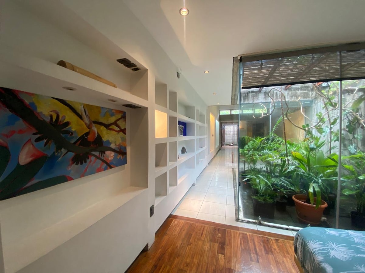 This newly constructed home, surrounded by a lush tropical garden is an oasis in Santa Ana town center. It is located in a quiet and safe área, short minutes driving to shops, restaurantes, office centers, hospitals and tourist attractions. Perfect for long stays, remote working, medical tourism, one day tours base and digital Nomads. Fast Wi-Fi and ethernet ports in-rooms and common areas. Enquire about the following services: Transfers Massages Yoga classes Private chef Salon services