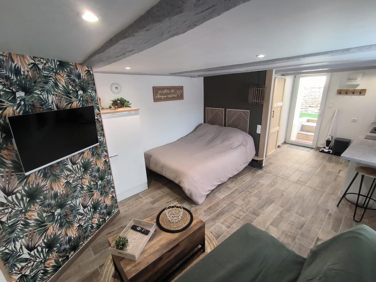 Kick back and relax in this cozy, stylish space. We renovated this 40 m2 home near our home with quality services, terrace and private courtyard. A living room with an equipped kitchen, a bedroom with storage, a shower room Equipped with fiber optics. Located in the heart of Jaunay-Marigny (village of Jaunay-Clan), shops 2 min walk, 5 min from Futuroscope and Arena Independent and non-smoking accommodation No pets allowed