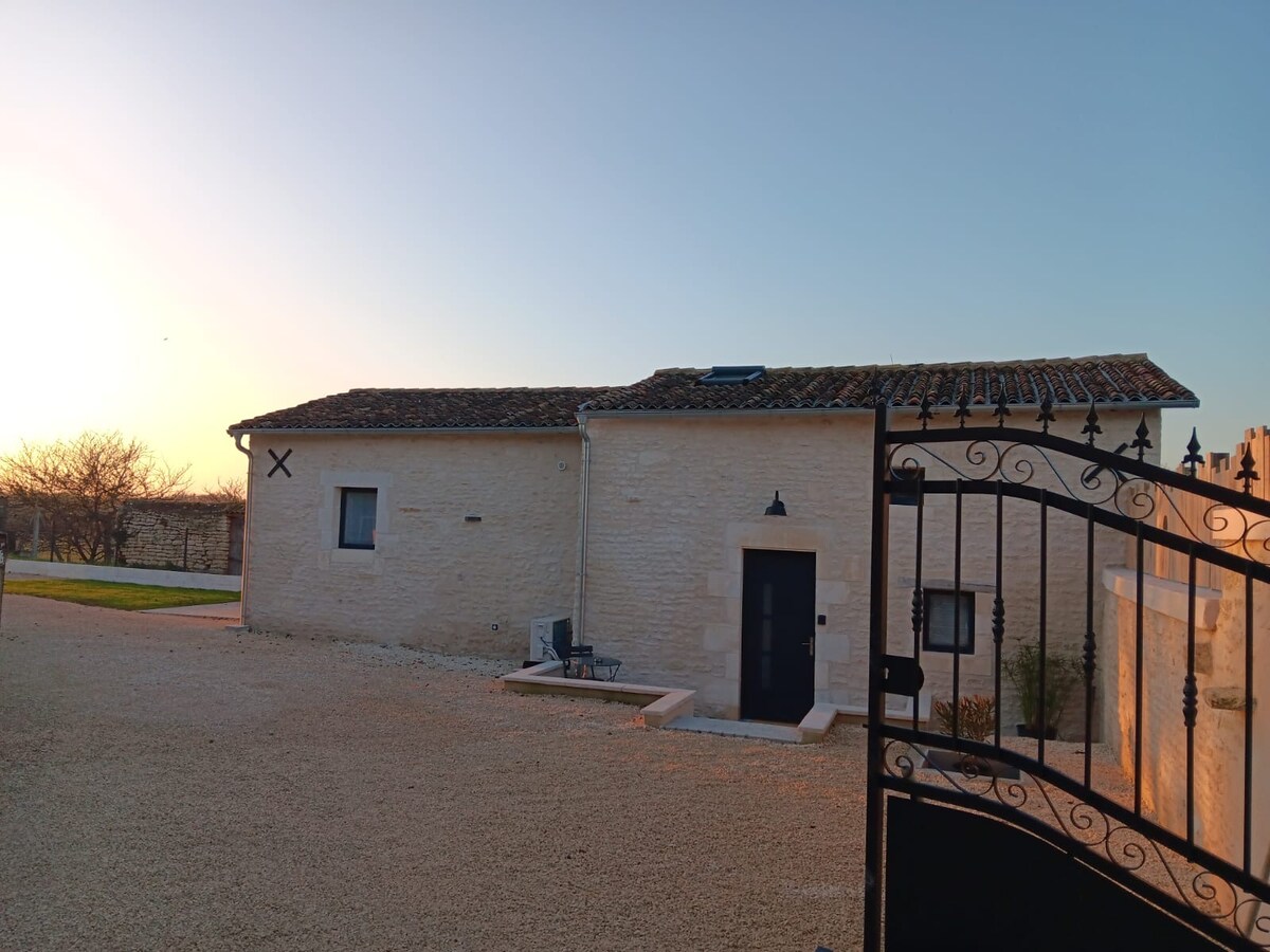 Take a break and unwind at this peaceful oasis. Ideally located 10 minutes' drive from FUTUROSCOPE Aquascope ARENA, 8 minutes' drive from A10 Futuroscope exit no. 28 and 5 minutes' drive from the supermarket. Forge Petit Chapron: renovated building, countryside, near Poitiers – Free parking, closed courtyard. Real equipped kitchen (oven, range hood, induction cooktop, fridge, dishes), master bedroom 1 bed x2 (140 cm), 1 living room + kitchen + living room with sofa bed for 2 (160 cm) + bathroom and toilet upstairs stairs