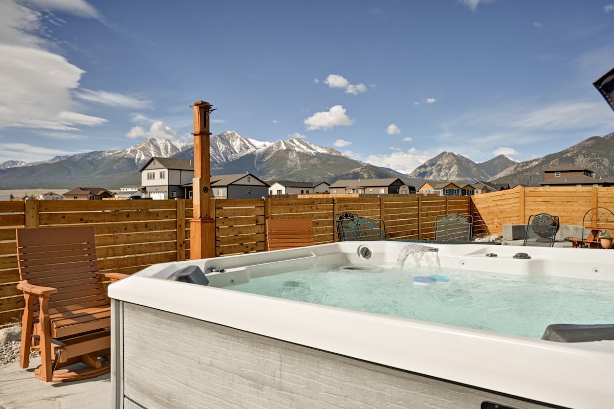 ★Nearby Reservoirs ★Buena Vista ★Mt Princeton ★Dream Stream ✓Short drive to world class fishing, hiking, biking, hot springs, snowshoeing, horseback riding, cross country skiing, rock climbing, white water rafting, off roading, ziplining, dining and shopping ✓MOUNTAIN VIEWS from the large backyard and 2nd floor balcony ✓Grill + Firepit ✓Smart TV: Hulu, Netflix & Disney+ provided ✓Cozy pellet stove ✓Brand new comfy beds: 1 king, 2 twin ✓Equipped Kitchen ✓Fast Wifi ✓Keyless entry ✓Garage