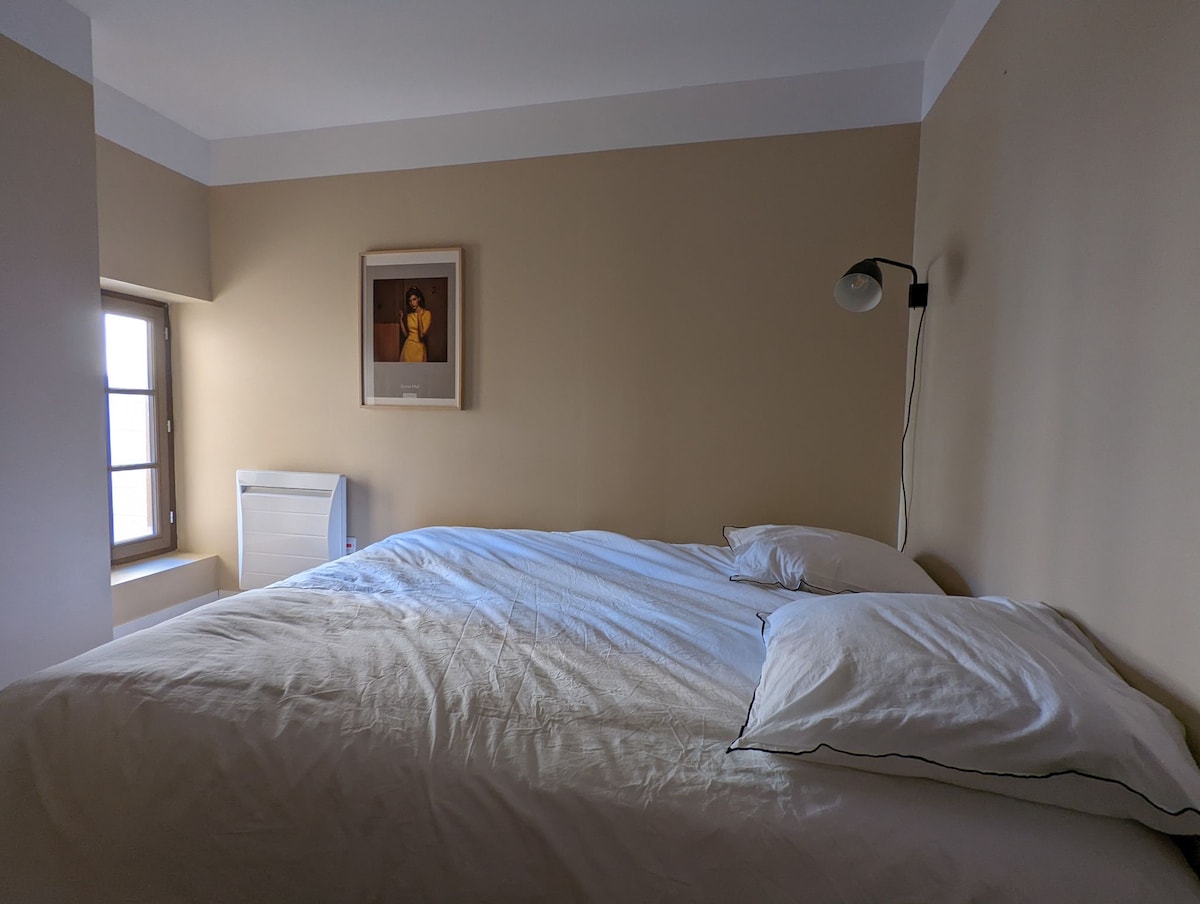 studio for 2 or 3 people, 23 m2, plus mezzanine on Saint Galmier. Enclosed courtyard. reversible heating with air conditioning, TV, equipped kitchen, Senseo, kettle, sofa bed that converts to 140 on the ground floor. 1 bed in mezzanine 160×200. Linens provided. Bathroom with shower, heated towel rail, 1 sink, toilet and towels provided Upstairs, a mezzanine with 160 x 200 bed. Air conditioning. Pets not allowed. No smoking. Parties are forbidden. Before booking, please contact me.