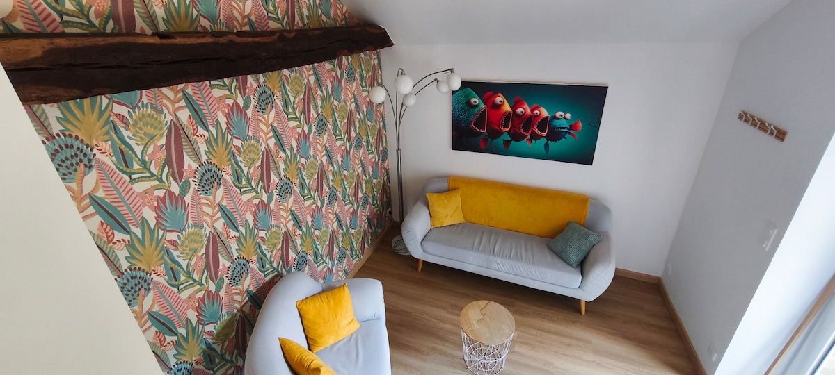 Enjoy a stylish and cozy home, refurbished in 2023, located in the bay of Mont St Michel. Apartment in the heart of the historic district of Avranches where shops and restaurants are within walking distance. Ideal accommodation for business trips or romantic getaways. Quick access via the 4-lane highway to Mont St Michel (20 min) and St Malo (45 min). There are beautiful beaches 15 minutes away towards Granville. Free parking nearby.