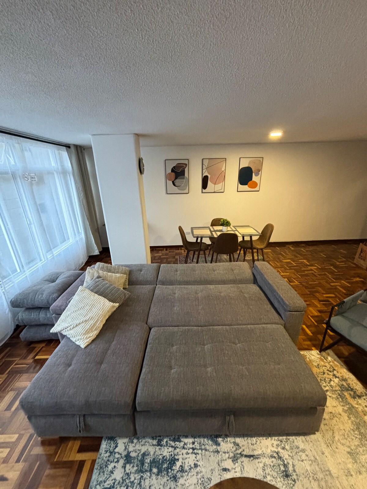 A stylish brand new place to stay perfectly comfortable for a short or long period of time. It has clearly everything you might need for having a unique and unforgettable experience overlooking the beautiful mountains and view of Bogota during the day and night. A great queen size bed, a sofa-bed, excellent bathroom, and for those that likes cooking, it has all sort of gadgets for facilitating so.Nearby you will find the best clubs such Theatron, among many others, grt-bars and shopping spots.