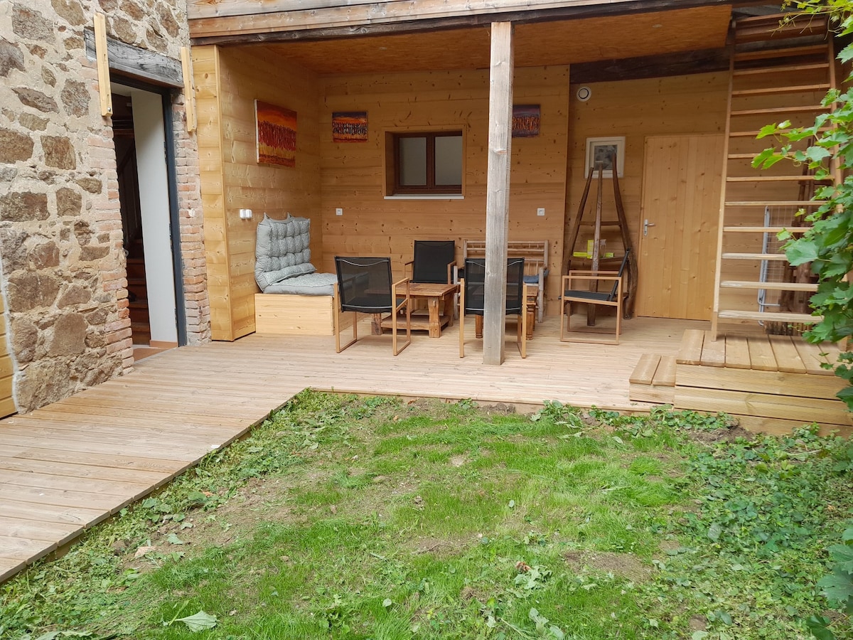 An outbuilding a few meters away from the main house, which has become a peaceful place to live. Guests will appreciate its fully equipped kitchen, a bedroom with bathroom, a sofa bed in the living room and its exterior. Close to the Peaugres Safari Park, the cabin will allow you to discover the Ardeche Verte, our region near Lyon, rich in its past and nature.
