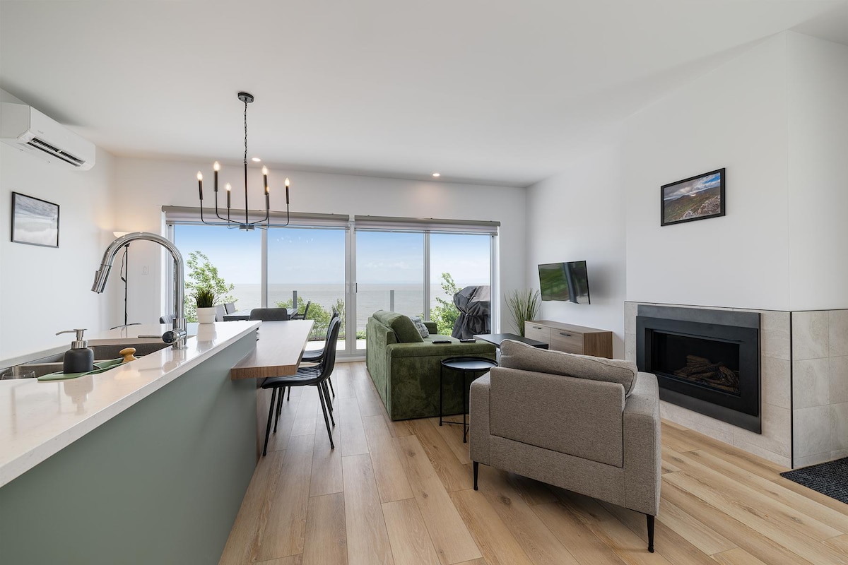 Backed by the St. Lawrence River, Boho L'industriel is strategically located between the mountains and the old capital. Overlooking the river, the huge terrace will be the perfect place for a well-deserved aperitif. Let out the chef in you, and enjoy the open-plan kitchen as well as its large spacious island. In the evening, relax on the mezzanine and then let yourself be carried away in the arms of Morpheus to the large master bedroom.