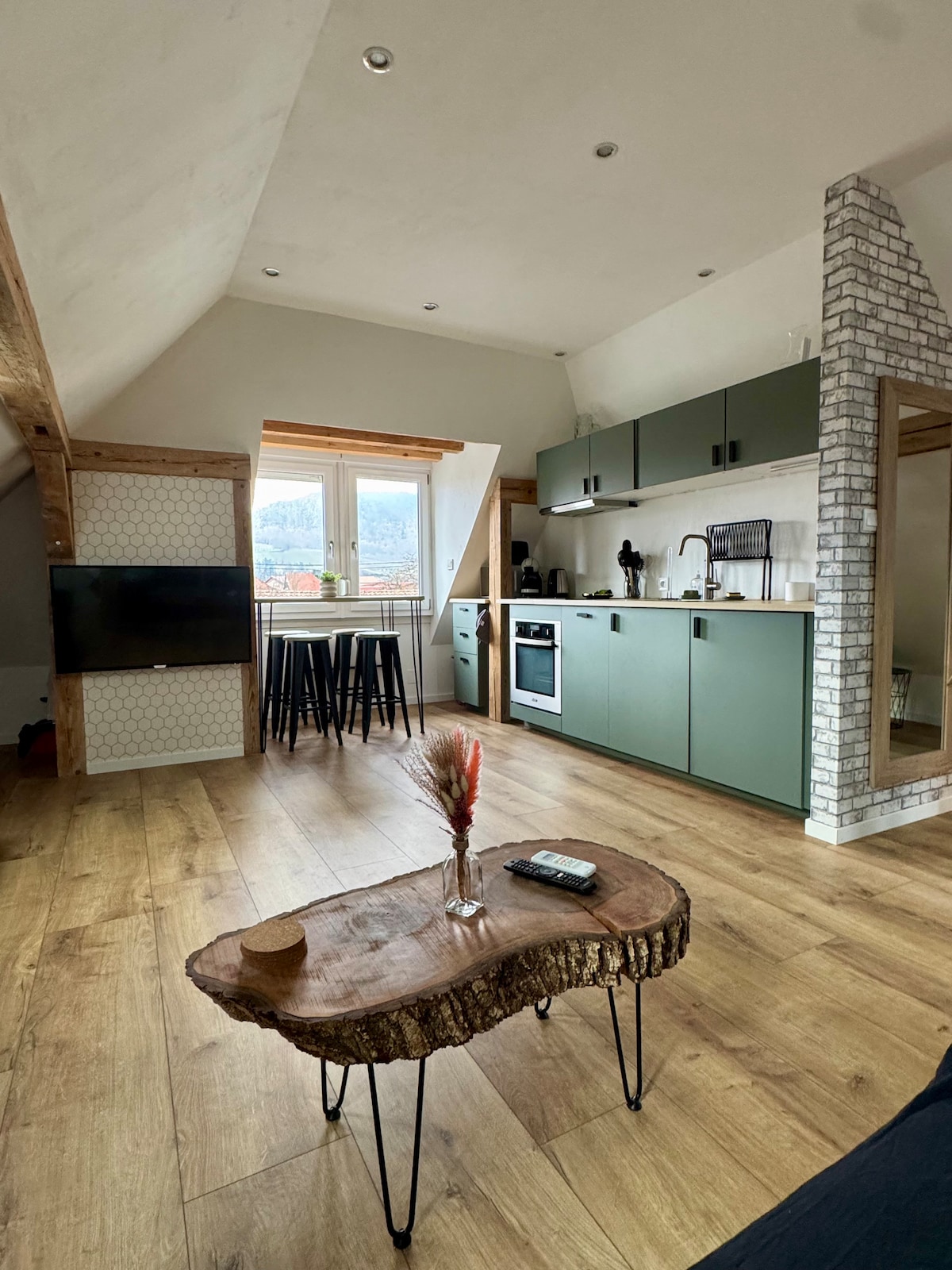 Découvrez ce charmant appartement, situé dans une maison au coeur de l'Alsace, qui vous accueille avec une entrée privée créant une atmosphère d'intimité dès les premiers pas. Une terrasse couverte en bois vous donne l'impression d'être niché dans un cocon. Découvrez les vignobles, les marchés de Noël magiques, et l'architecture médiévale qui caractérisent notre région, puis détendez-vous sur la terrasse en savourant un verre de vin alsacien, ou dégustez un plat traditionnel dans votre cuisine.