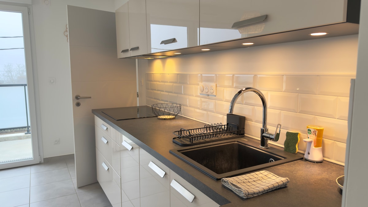 Welcome to Dijon, the capital of Burgundy where history, food and nature meet! I invite you to discover my stylish T2 apartment, nestled on an intermediate floor of a modern residence with elevator. This bright 45m2 cocoon offers you all the comforts for a memorable stay. Imagine enjoying your morning coffee on a spacious 12m2 balcony, bathed in the sun, ideal for enjoying alfresco calm. You'll enjoy the comfort of a plush double bed, perfect for restorative nights after a day of exploring. With a private parking space, you'll never have to worry about finding where to park. Located just 150 meters from a grocery store, all your groceries are at your fingertips. The nearby tram stop connects you directly to the vibrant heart of Dijon in less than 15 minutes, leaving you all the time to explore the wonders of the city. Nearby, Fitness Park invites you to maintain your shape in a modern gym. But that's not all! Minutes from the apartment, Lake Kir awaits you for moments of absolute relaxation. Whether it's for a waterfront walk, a refreshing swim, or just enjoying nature, this idyllic setting will add a touch of escape to your stay. Dijon, renowned for its refined cuisine and world-renowned wines, has great surprises in store for you. The international city of gastronomy and wine, located on the itinerary of the city center, immerses you in the tasty world of Burgundy, with unique culinary experiences around every corner. Book this charming apartment for a stay where comfort and charm come together perfectly. Savor every moment in this welcoming setting, perfect for discovering the wonders of Dijon. If you have any questions, I'm here to answer them with a smile and a good dose of good humor! Nicolas!