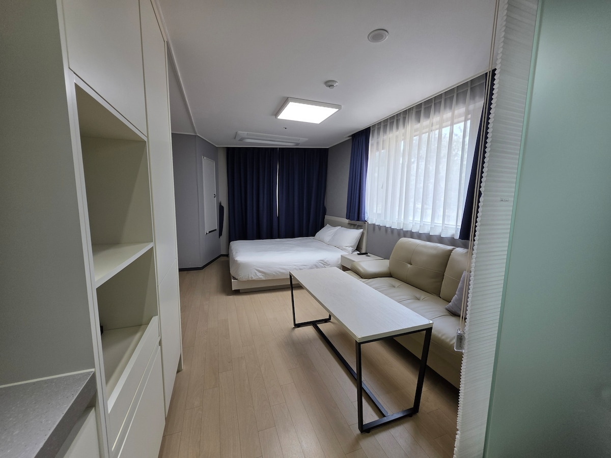 The best view of the hotel is a junior suite on the 11th floor with 1.5 rooms (35m") size bedroom and living room and kitchen separated, so you can enjoy the view of the mountains, sea, and lake at the same time. It is a new hotel in January 2020, located in the center of the city, with tourist attractions such as Sokcho Tourist & Fishery Market, Gaetbae, Abai Village, Dongmyeong Port, Sokcho Port, Lighthouse, Sokcho Beach, and Cheongcho Lake, famous restaurants, and convenient transportation, free parking, electric vehicle charging station, and other amenities within 200m. The room is also very clean and modern as it is managed by the operator so that you can heal.