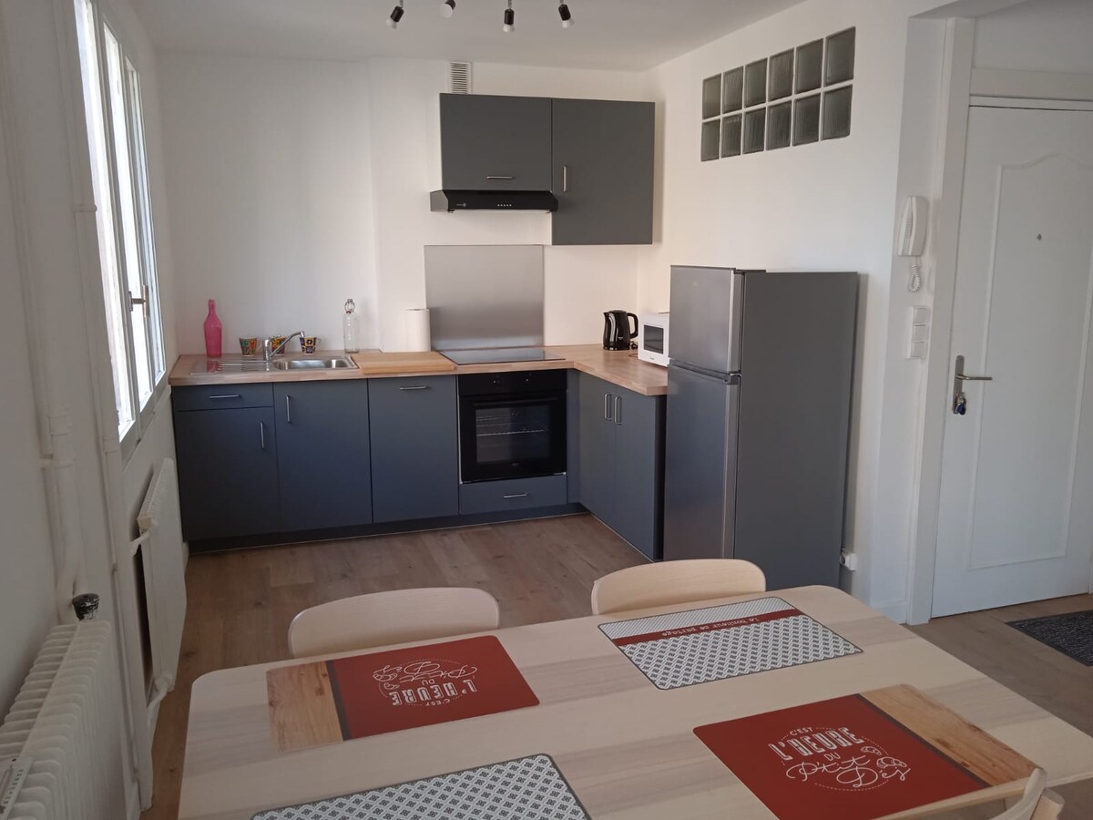 39 m² apartment, well lit on the 1st floor in a small country village with amenities (bakery, grocery store, bar/tobacco store 100 m away). 30 km from Moulins, 45 km from Montluçon and 10 km from Bourbon-l'Archambault (spa town). Including: A fitted kitchen (fridge, oven, microwave, ceramic hob, coffee maker, kettle, kitchen accessories...) open to the living room with sofa bed, a bedroom with 140 bed, a bathroom with shower and towel dryer, separate toilet.