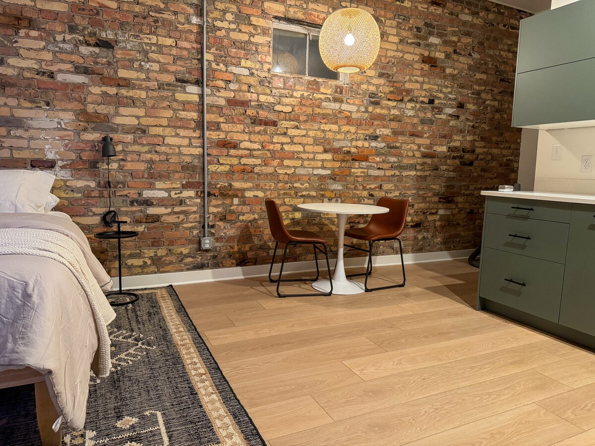 Vaulted skylights allow natural light. Ksize bed. Couch opens into a full size bed. (DEEP cleaned to AirBnb COVID-19 disinfectant standards) Fully stocked kitchen, sm. bathroom w/ shower. Parking ft. of house, 1.5 M from Lake Michigan Shoreline, 2 blocks to 15th St. entry to Prairie-Dune Trail. European Market (May -Oct) each Saturday downtown. Fall season drives along U.S. HW 12 & 20 for foliage Winter day hikes, x-county skis trail, shopping trips to the Michigan City Outlet mall.
