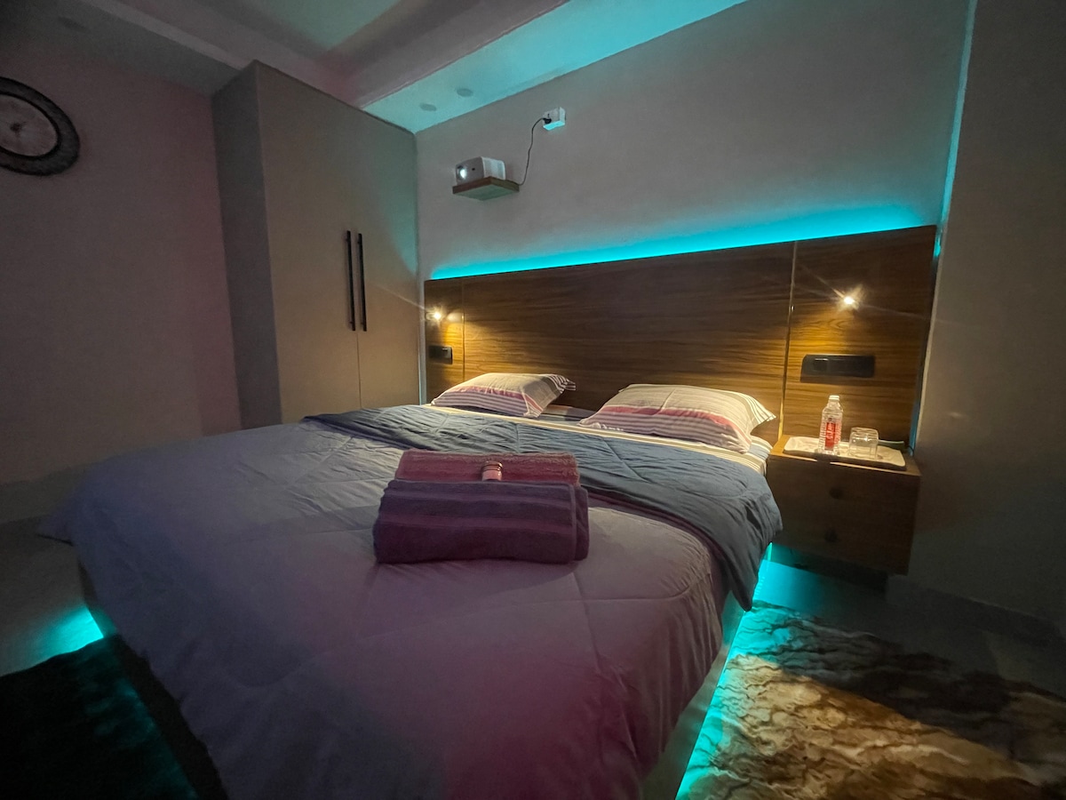 1. Spacious private room with modern washroom and attached balcony for relaxation. 2. Fully private stay – enjoy complete comfort, privacy, and peace. 3. Elegant, stylish interiors with chic décor for a cozy, luxurious feel. 4. High-speed Wi-Fi and TV with streaming like Netflix and Prime. 5. Well-connected location in Chattarpur Enclave Phase 2, near shops, essentials, and Metro. 6. Perfect for travelers seeking a calm, convenient, and enjoyable getaway.