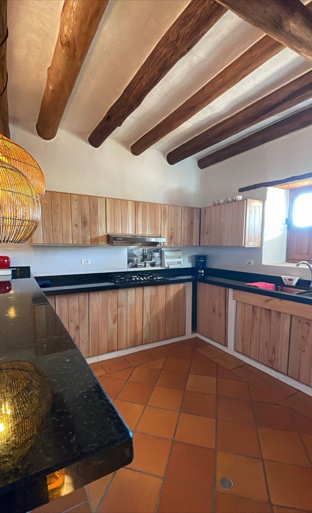 This is truly a beautiful property overlooking the Uchata mountain range. Ten minutes outside Barichara, on the way to Guane, this tobacco farm has been carefully renovated. The house was ranked as one of the best in 2019 by Axxis architecture magazine and won mention in the 2022 Architecture Biennial. The outdoor kitchen and pool area make cooking a social event. There is an authentic clay oven and barbecue for cooking over wood.