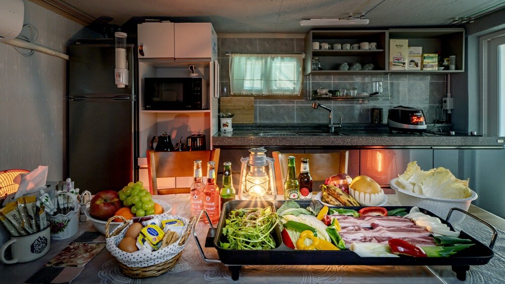 This building uses only Hinoki cypress beds and pure eco-friendly materials, without any materials that generate concrete and environmental hormones that cause various skin diseases. It is a space just for you, where you can fully rest your body and mind in a large yard. It is located in a position where you can see the summit of Bohyeonsan Mountain, where the largest astronomical observatory in the East is located, so when the weather is clear, the stars pour in at night, and in autumn, the leaves of the maple leaves surrounding the house form a spectacular view. It is a place where the winding mountain roads are inconvenient, there is no television, but the quiet sound of the mountains, the clear air, and the stars and moonlight like the ocher of the night greet you. We welcome those who do not miss the things left behind in the city and want to rest infinitely. It is recommended for those who are tired of city life and want to heal, rather than those who want to enjoy active activities or drinking and dancing. The accommodation is always disinfected. (Disinfect with MD-125, an EPA-approved disinfectant.)